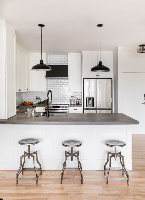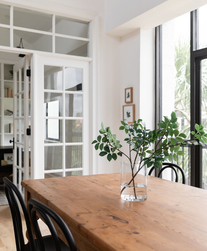 A full-service remodel and furnishing project where we stripped the previously all-brown 2/2 condo down to the studs and gave it new life as an inviting 3/2 with clean modern lines but hints of vintage finds sourced by us around every corner.